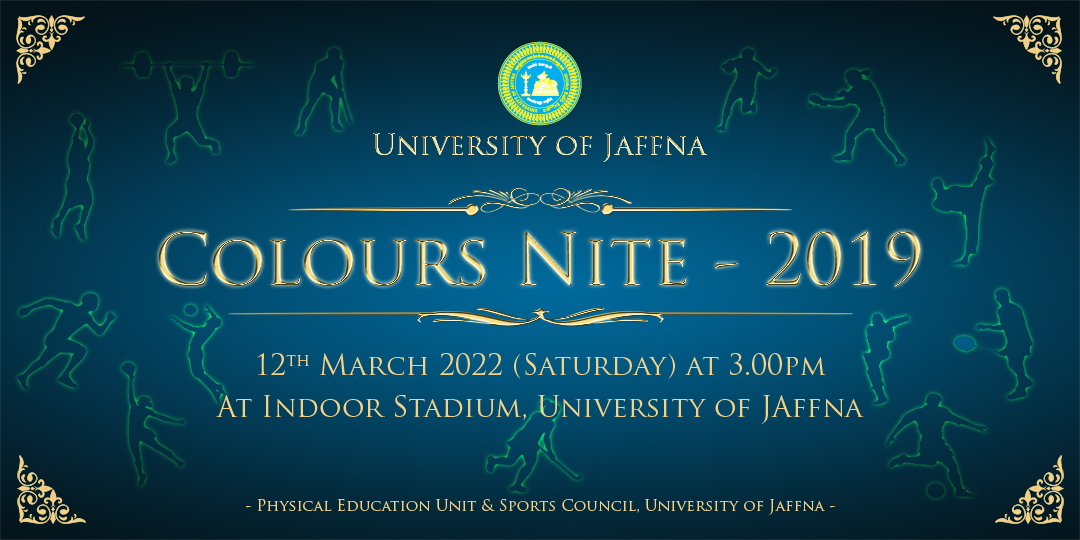 The Colours Nite 2019 of the University of Jaffna will be held on 12.03.2022 (Saturday) at 3.00pm onwards at Indoor Stadium, University of Jaffna. Continue Reading