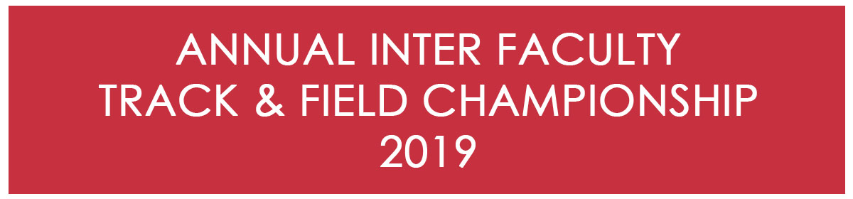 The Annual Inter Faculty Track & Field Championship – 2019 will be held on 22nd & 23rd of June 2019 (Saturday & Sunday) from 1.00pm to 5.30pm and 8.00am to 5.30pm respectively as per the following schedule: