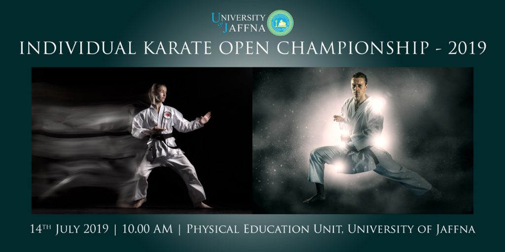 The University of Jaffna Individual Karate Open Championship – 2019 will be held on 14th July 2019 (Sunday) at 10.00am at Physical Education Unit, University of Jaffna.